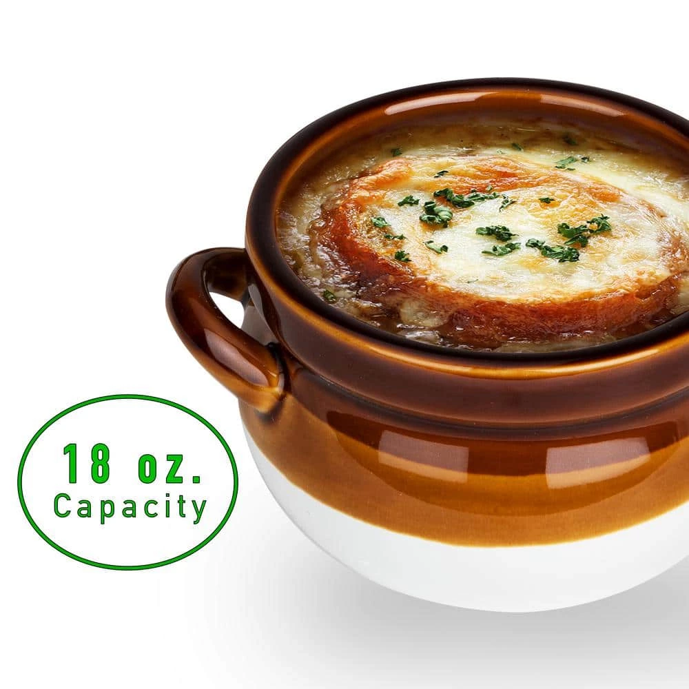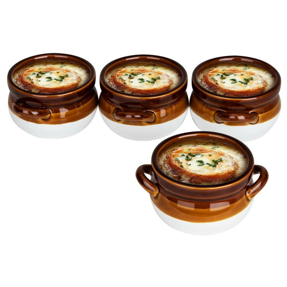 Do you love to cook? How about personal foods like soups, stews, pot pies, and more? Do you love you some French Onion Soup? Look no further than the Mind Reader Ceramic Set Of 4 Soup Bowls. They are everything you need to chow down on some tasty foods. Each set has four 18 oz soup bowls. This is the perfect size for a personal potion of your favorites. They are absolutely perfect for cooking up soups, stews, pot pies, chili, casseroles, and much more. Each bowl is designed with two large, comfort grip handles for safe, easy carrying. Serving it hot, just like you like it. This set of bowls are made from durable ceramic that is tested to be oven, dishwasher, microwave, and freezer safe for maximum convenience. Dimensions: 3.85″ X 3.65″ : Material: Ceramic : Capacity: 18 oz ( 1.1 lbs )