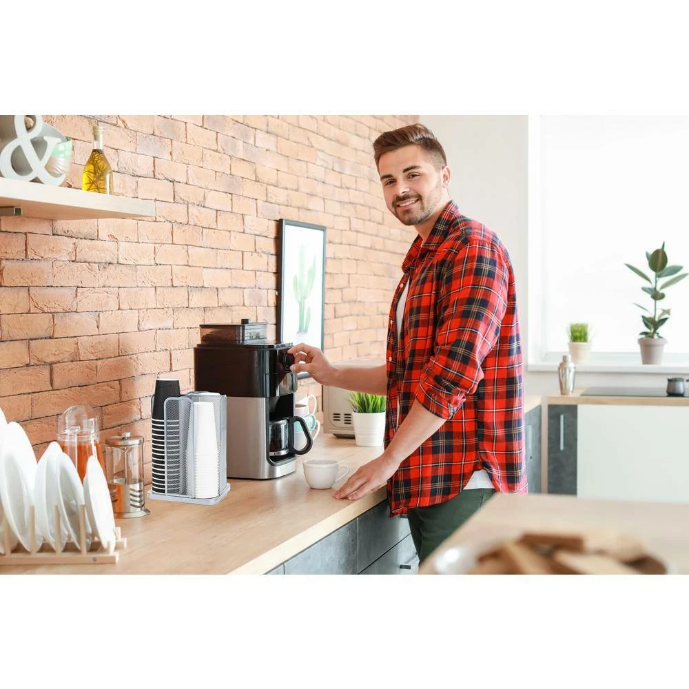 - ORGANIZER SPACESAVER CONVENIENCE: Make it easy for your kids, staff and patrons to access disposable coffee and beverage cups and lids with this vertical space saving cup and lid storage organizer.