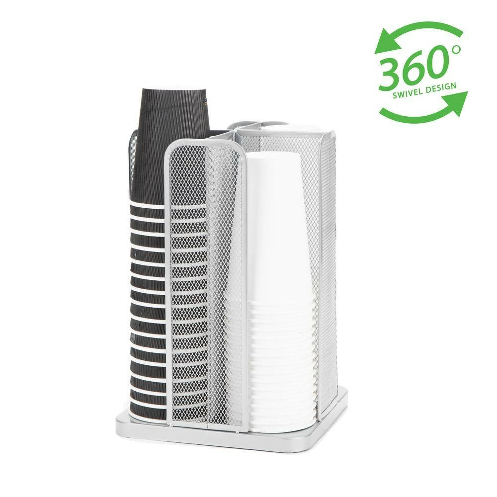 - EASY TO USE SPINNING CUP/LID CADDY : Revolving cup caddy features 4 compartments for stacking beverage cups and lids with easy access and restocking as needed.