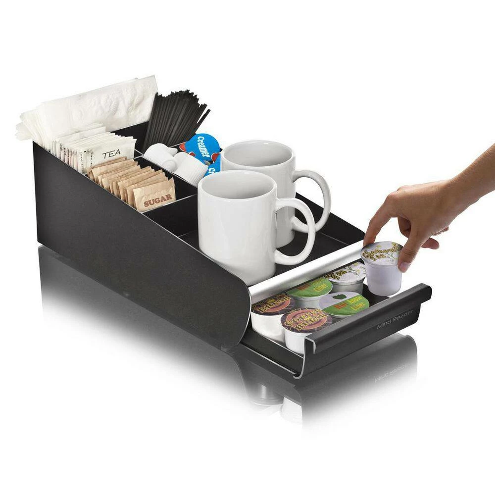 - Easy to clean don’t let spills or stains get in the way, coffee stations can be dirty but this Mind Reader coffee organizer is easily cleaned in just a few wipes the exterior and inside drawer can be wiped without effortlessly with a cloth or paper towel
