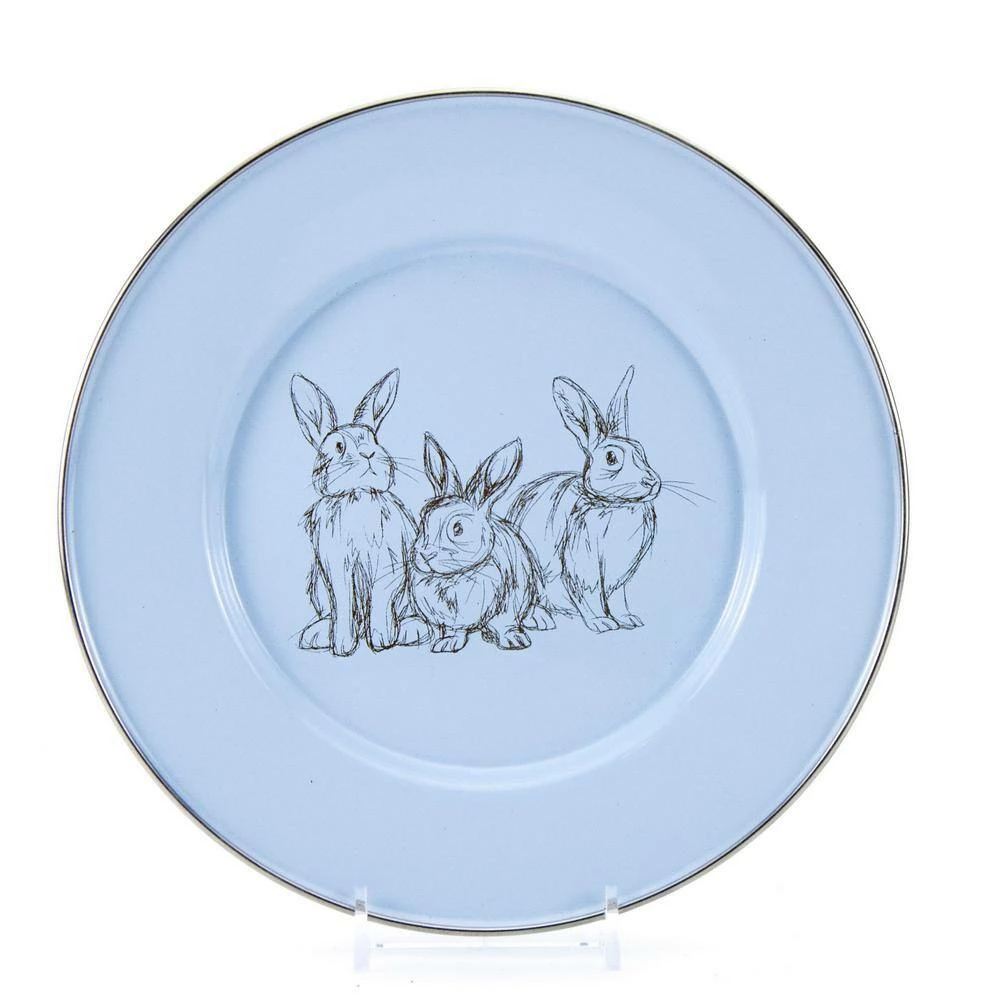 - Beautiful blue bunnies design on porcelain enamel finish
