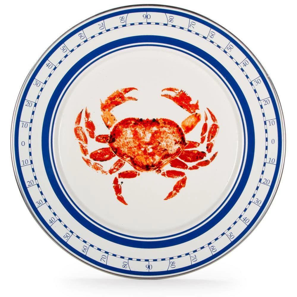 This is a 12.5 in. Chargers (set of 2). This Enamelware is made of carbon steel coated with a porcelain enamel and trimmed in stainless steel. There will be variations in the shading of colors and pattern formations which are the results of the hand-dipped process.