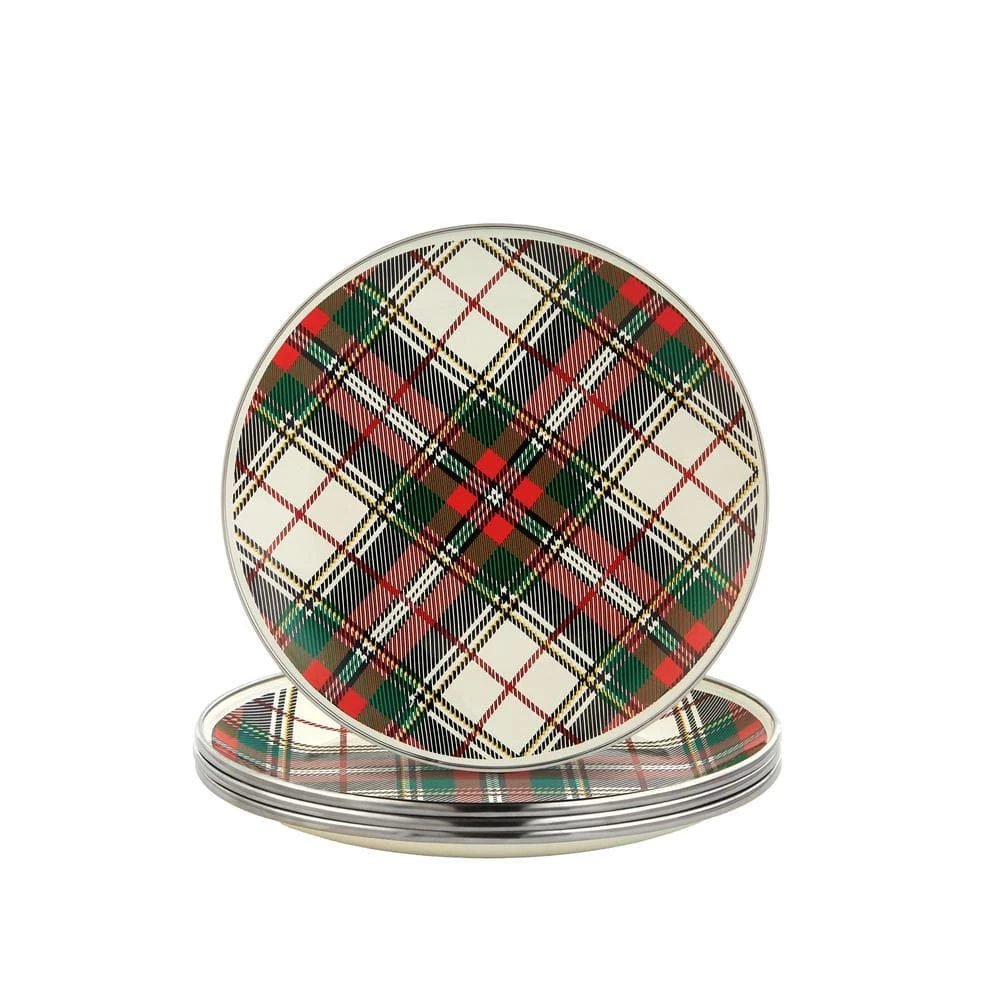- Beautiful Highland Plaid Design on Porcelain Enamel Finish