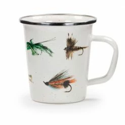 16 oz. Fishing Fly Enamelware Latte Mugs (Set of 4) by Golden Rabbit